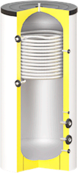 Также бак оснащен спиральным теплообменником для подключения дополнительного источника тепла, такого
