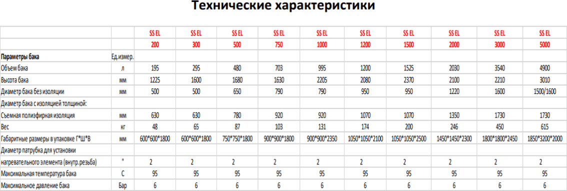 Баки серии SS ELECTRO применяются в системах с электрическими нагревательными элементами (ТЭНами). В связи с этим, на баке может присутствовать от 2 до 10 отводов с внутренним диаметром резьбы 2″. В базовой оснастке бак поставляется только с двумя такими отводами. Также бак может быть оснащен ревизионным фланцем, для технического обслуживания емкости (опционально).