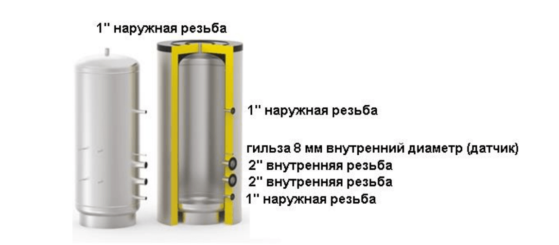 Опционально в состав бака входит защитный магниевый анод (расположен под теплоизоляцией в верхнем куполе).