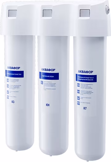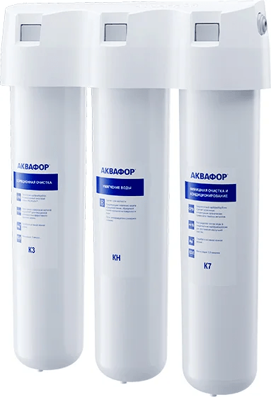 Для смягчения жесткой водопроводной воды российский производитель «Аквафор» предлагает современный фильтр «Кристалл Н». Уникальная трехступенчатая система очистки позволяет избавиться от нежелательных примесей, песка, бактерий и тяжелых металлов, делая воду безопасной для взрослых и детей. Скорость фильтрации составляет 2 литра в минуту, поэтому стакан чистой воды наливается буквально за 10 секунд. Компактный корпус фильтра монтируется под мойкой, а на столешницу устанавливают кран для подачи отфильтрованной воды. Замена картриджей происходит раз в год. Картридж можно восстанавливать до четырех раз, прополоскав солевым раствором по инструкции. Замена картриджей не требует специальных умений и навыков. Фильтр устойчив к скачкам давления в водопроводе.