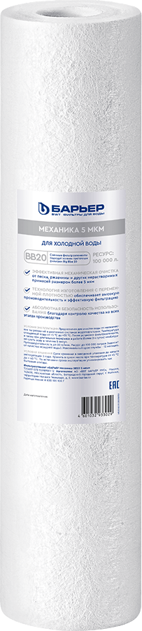 Сменный картридж «Профи ВВ 20 Механика» устанавливается в любой магистральный фильтр стандарта Big Blue 20 и обрабатывает до 20 л/мин. Картридж для очистки воды способен задерживать частицы ила, песка, ржавчины и других вредных примесей.