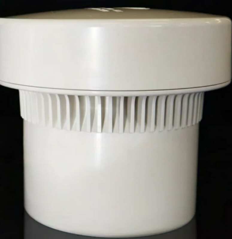 Воздушный клапан SINIKON (аэратор) АБС D 110 (белый) КВ.110 устанавливается внутри здания в верхней точке канализационного стояка в закрытом положении, автоматически открывается при спуске воды, подавая воздух в систему до нормализации давления, затем снова закрывается.