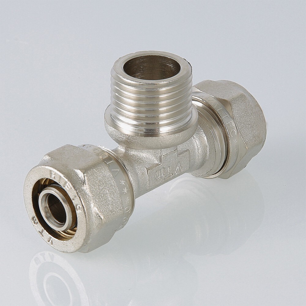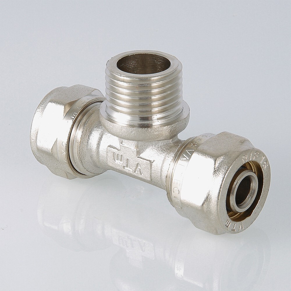 Тройник Valtec VTm.333.N.160416 с переходом на наружную резьбу, 16 мм х 1/2"