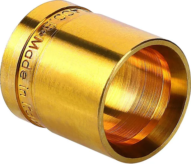 Гильзы надвижных фитингов VALTEC отличаются от фитингов цветом, так как они изготавливаются из латуни CW614N с последующим обжигом, для достижения необходимого уровня пластичности. Также гильзы дополнительно обрабатываются и снаружи – для получения наибольшей точности толщины стенки.