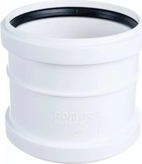 Муфты ремонтные предназначены для ремонта поврежденных линейных участков канализационной трубы. В отличии от соединительной муфты не имеет упорного бортика внутри, что позволяет легко надеть ее на заменяемую часть трубы. Оба конца ремонтной муфты снабжены резиновыми уплотнительными кольцами. Для канализационных трубопроводов с улучшенным шумопоглащением Ремонтные муфты выпускаются диаметром 50 и 110 мм.