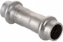 Двухраструбная пресс-муфта из нержавеющей стали предназначена для соединения тонкостенных стальных труб в системах водоснабжения, отопления, других инженерных и технологических установках с рабочей температурой до 120 °С. Номинальное давление – 16 бар.