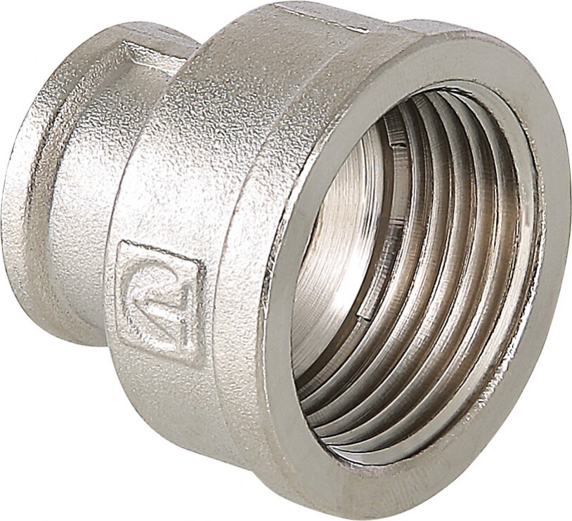 (VTr.240.N) Латунная никелированная муфта для перехода с одного диаметра трубы на другой. Резьба – внутренняя/внутренняя, цилиндрическая трубная по ГОСТу 6357 (ISO 228, EN 10226), совместима также с наружной конической трубной резьбой по ГОСТу 6211 (ISO R7).