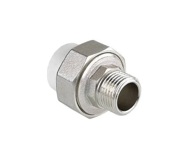 Полипропиленовый фитинг для создания разъемного, с использованием накидной гайки, соединения полипропиленового трубопровода с трубопроводом или арматурой из других материалов.