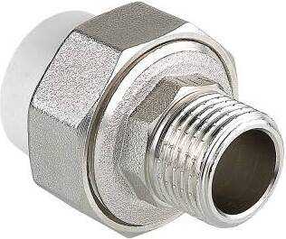 Полипропиленовый фитинг для создания разъемного, с использованием накидной гайки, соединения полипропиленового трубопровода с трубопроводом или арматурой из других материалов.
