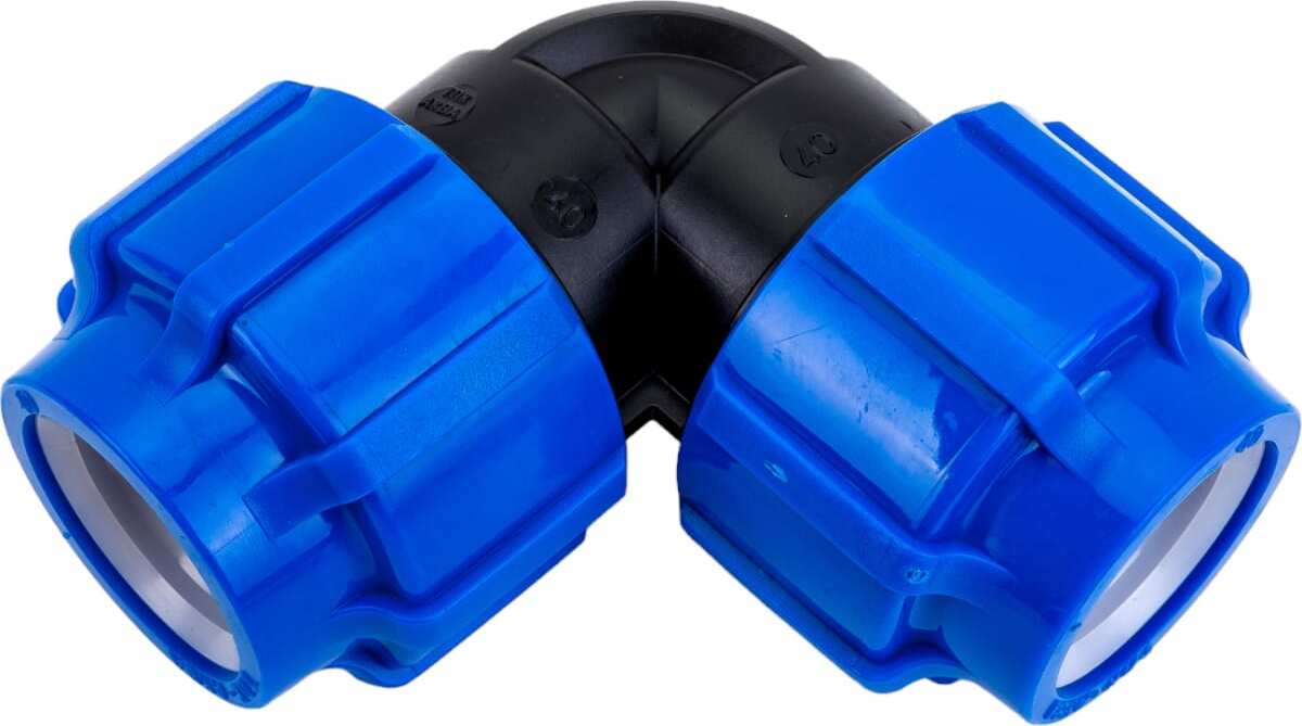 Отвод компрессионный. Предназначен для обеспечения надежного соединения двух полиэтиленовых труб равного диаметра между собой, под прямым углом. Может использоваться при строительстве систем питьевого или технического водопровода, систем напорной или безнапорной канализации, для устройства кабельных каналов из ПНД труб с рабочим давлением до 16 атмосфер для труб диаметром от 20мм до 63мм.