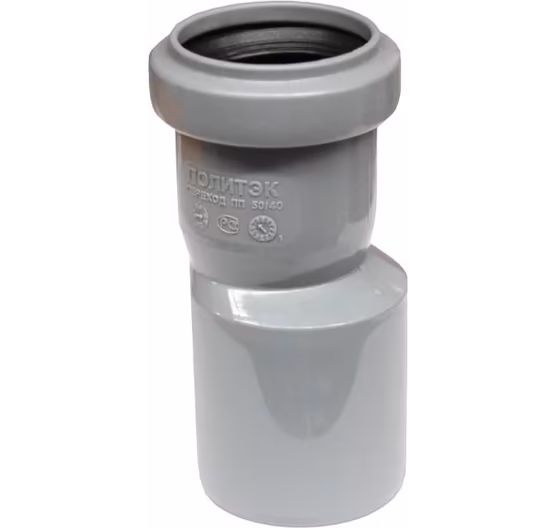 Предназначен для редуцирования потока и соединения раструба канализационной трубы/фитинга большего диаметра с гладким концом трубы/фитинга маньшего диаметра.