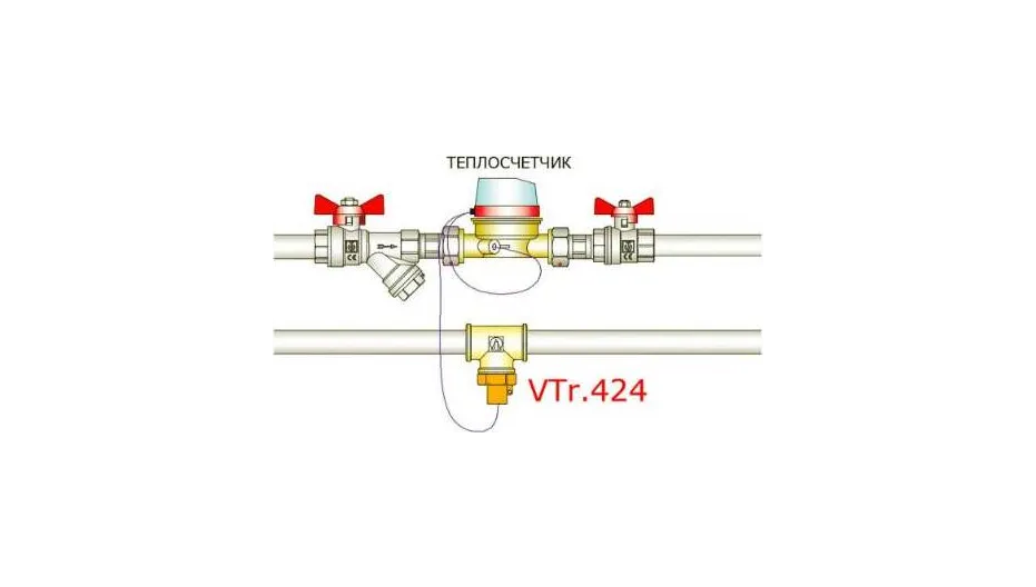 Переходник для датчика температуры VTr.424 выпускается методом объемного горячего прессования из латуни марки CW617N c последующим никелированием. С одной стороны фитинг имеет трубную наружную резьбу диаметром 1/2, 3/4 или 1". В противоположный патрубок с внутренней метрической резьбой M10х1 может устанавливаться датчик температуры теплосчетчика VHM-T. Переходник оснащен ушком для пломбировки и может присоединяться к обычным резьбовым тройникам.