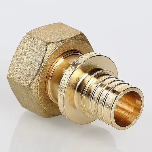VTm.422.BG – прямой латунный универсальный надвижной фитинг с накидной гайкой для создания разъемных соединений труб из сшитого полиэтилена и полиэтилена повышенной термостойкости c патрубками сантехнических устройств, имеющими наружную резьбу. Накидная гайка – самоуплотняющаяся, комплектуется прокладкой.