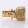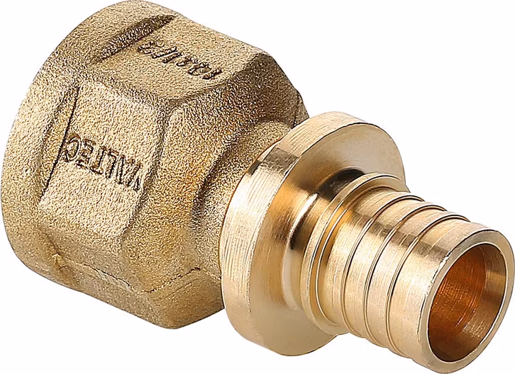 Фитинг надвижной VTm.402.BG – прямой латунный универсальный аксиальный фитинг с переходом на внутреннюю резьбу для монтажа соединений труб из сшитого полиэтилена и полиэтилена повышенной термостойкости.