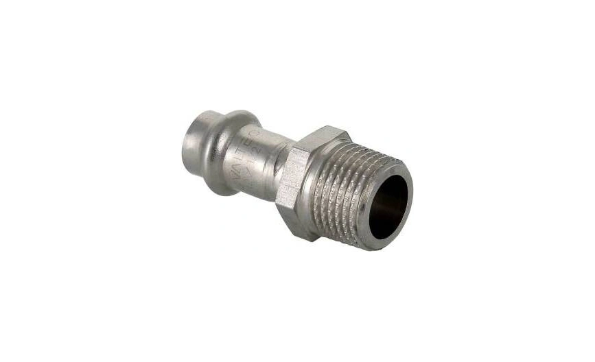 Пресс-фитинг из нержавеющей стали с наружной резьбой обеспечивает соединение тонкостенной стальной трубы с резьбовым элементом монтируемой системы. Область применения – трубопроводы водоснабжения, отопления, иные инженерные и технологические установки с рабочей температурой до 120 °С и давлением до 16 бар.