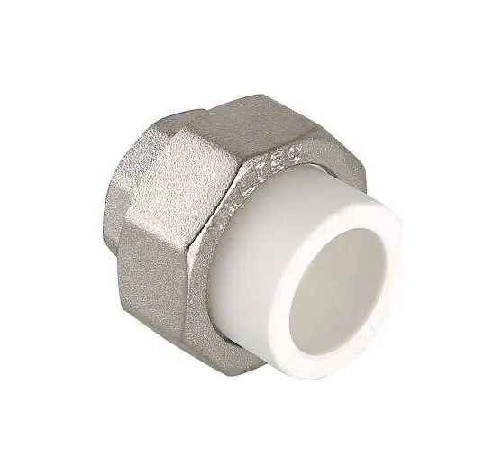 Полипропиленовый фитинг для создания разъемного, с использованием накидной гайки, соединения полипропиленового трубопровода с трубопроводом или арматурой из других материалов.
