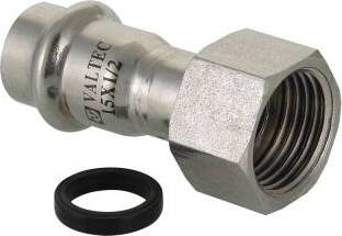 (VTi.908.I) Пресс-фитинг из нержавеющей стали с накидной гайкой обеспечивает соединение тонкостенной стальной трубы номенклатуры VT.INOX-PRESS c элементом системы, имеющим наружную резьбу. Область применения – трубопроводы водоснабжения, отопления, иные инженерные и технологические установки с рабочей температурой до 120 °С и давлением до 16 бар.