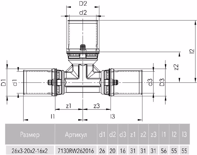 Тройник Comap редукционный 26-16-20 пресс латунь УТ-00148146