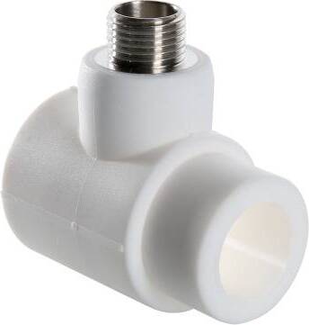 Корпус тройника выполнен из полипропилена PPR100, закладная резьбовая деталь – латунная (марка сплава – CW617N, способ изготовления – горячее штампование), никелированная.