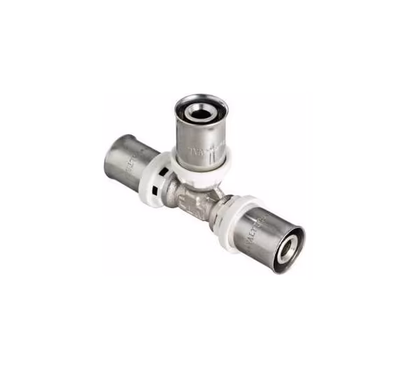 Корпус выполнен из сантехнической латуни марки CW617N, уплотнительные кольца штуцеров – из EPDM плотностью 1,22 г/см3, пресс-гильзы – из нержавеющей стали. Нейлоновая обойма выполняет функции фиксатора гильзы, направляющей для пресс-насадок и диэлектрической прокладки, прерывающей контакт между алюминием трубы и латунью корпуса. Конструкция пресс-фитингов VALTEC обеспечивает повышенную пропускную способность, надежность соединений, прочность и термостойкость. Монтаж фитинга производится пресс-инструментом с насадкой «ТН».