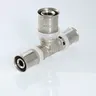 (VTm.231.N) Пресс-фитинг – тройник предназначен для соединения трех труб – металлопластиковых, из сшитого полиэтилена или полиэтилена повышенной термостойкости. Корпус выполнен из сантехнической латуни марки CW617N, уплотнительные кольца штуцеров – из EPDM плотностью 1,22 г/см3, пресс-гильзы – из нержавеющей стали. Нейлоновая обойма выполняет функции фиксатора гильзы, направляющей для пресс-насадок и диэлектрической прокладки, прерывающей контакт между алюминием трубы и латунью корпуса. Конструкция пресс-фитингов VALTEC обеспечивает повышенную пропускную способность, надежность соединений, прочность и термостойкость. Монтаж фитинга производится пресс-инструментом с насадкой «ТН». Типоряд содержит равнопроходные и переходные пресс-тройники.