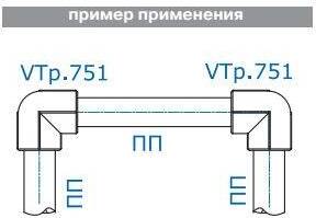 Двухсторонний фитинг для соединения элементов полипропиленового трубопровода под углом 90° друг к другу.