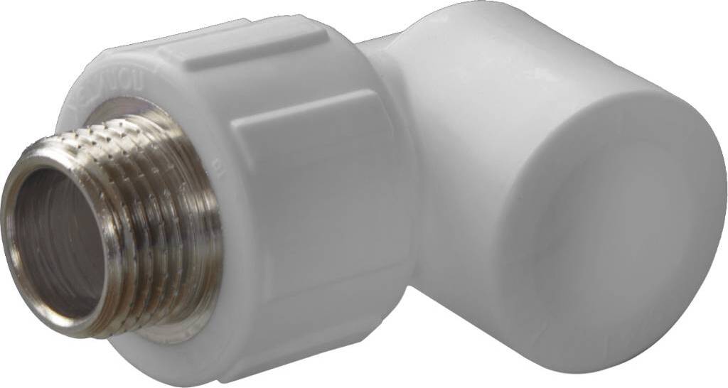 Угольник с наружной резьбой используется для соединения под углом 90о трубы PPR с резьбовым фитингом с внутренней резьбой. Выпускаются в вариантах: с трубы 20 мм на резьбу ½ или ¾, с трубы 25 мм на резьбу ½ или ¾, с трубы 32 мм на резьбу 1 или ¾.