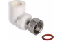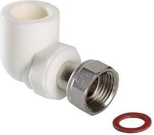 Двухсторонний полипропиленовый фитинг для соединения под углом 90° друг к другу полипропиленового трубопровода и компонента инженерной системы с резьбовым подключением.