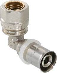 Пресс-фитинг – угольник с переходом на обжимное соединение предназначен для подключения радиатора либо конвектора при плинтусной разводке трубопровода отопления с помощью тонкостенной металлической трубки (медной, латунной, стальной) наружным диаметром 15 мм (в ассортименте продукции VALTEC для такого применения предназначен отвод из нержавеющей стали VTi.960.I). Обжимное соединение соответствует стандарту «евроконус».