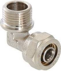 (VTm.353.N) Фитинг обжимной – угольник с переходом на наружную резьбу для металлополимерных (металлопластиковых) трубопроводов. Резьба фитинга – наружная трубная по ГОСТу 6357.