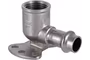 Пресс-угольник из нержавеющей стали с переходом на внутреннюю резьбу и креплением (водорозетка) обеспечивает соединение тонкостенной стальной трубы с резьбовым элементом (в частности, патрубком сантехнического смесителя) монтируемой системы под углом 90°. Область применения пресс-водорозетки из нержавеющей стали – трубопроводы водоснабжения, отопления, иные инженерные и технологические установки с рабочей температурой до 120 °С и давлением до 16 бар.