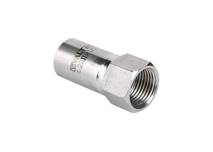 Вставка с внутренней резьбой VTi.907.l предназначена для использования совместно с пресс-фитингом системы VALTEC INOX-PRESS при монтаже трубопровода из нержавеющей стали – для перехода с пресс-соединения на резьбовое. Изделие изготовлено из стали AISI 304.