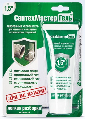 Анаэробный герметик «СантехМастерГель» предназначен для монтажа металлических резьбовых и фланцевых соединений. Образует высокопрочное уплотнение, устойчивое к различным средам: вода, природный и сжиженный газ, бензин, отопительные антифризы и др.