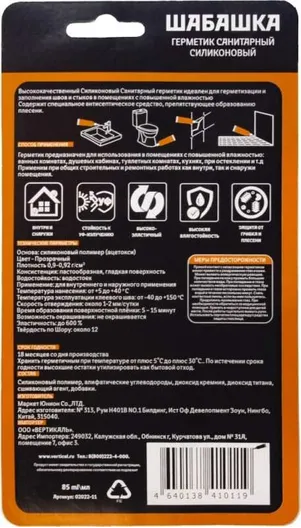 Силиконовый санитарный герметик ШАБАШКА 241353 прозрачный 85 мл