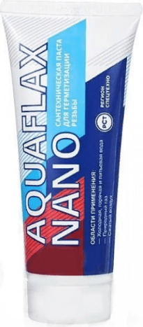 Эта уплотнительная сантехническая паста позволяет на много лет поддерживать льняные волокна в отличном состоянии — они не слипаются и не становятся жесткими. А это качество помогает в случае возникновения необходимости дальнейшей юстировки резьбового соединения или его демонтажа. Специальные вещества в составе пасты для льна AQUAFLAX NANO призваны на долго защищать металл от коррозии.