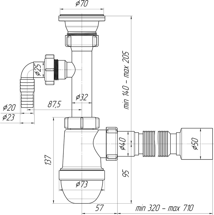 - Сифон подходит для большинства стандартных моек, что облегчает выбор и установку.