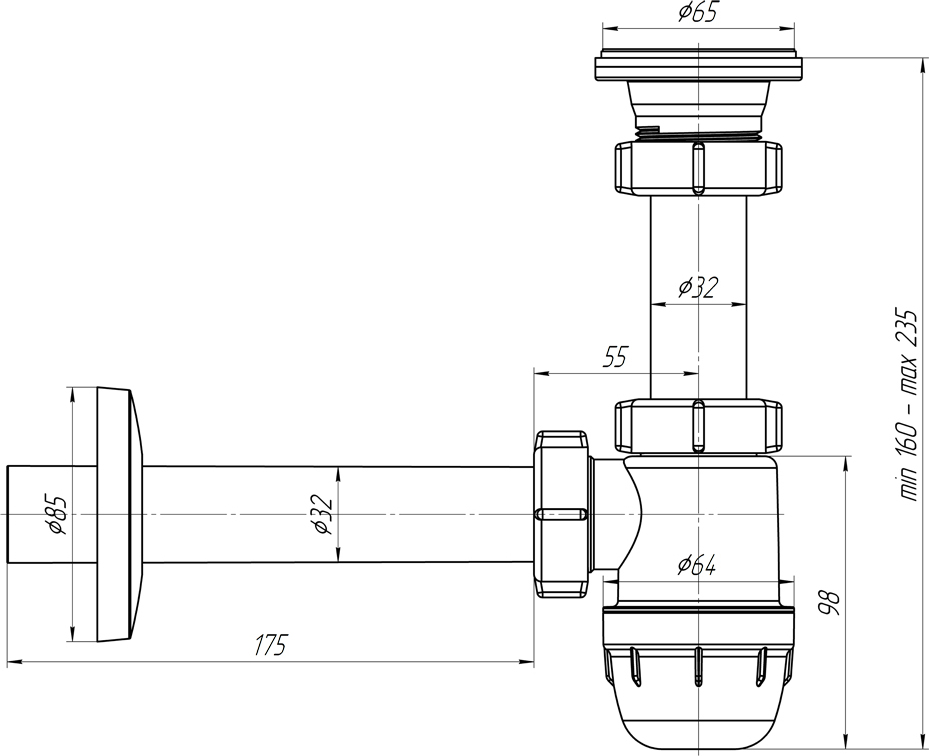 - Изготовленный из качественного пластика, сифон легко подгоняется под конкретные условия установки — все патрубки можно при необходимости аккуратно подрезать.
