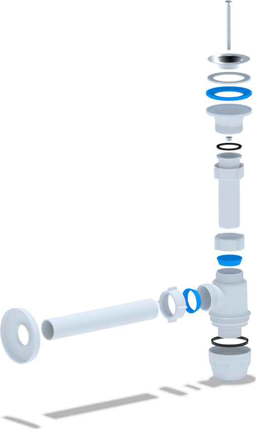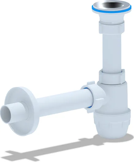 - Сифон оснащён съемной ревизионной чашкой, которая задерживает мелкие предметы, случайно упавшие в сливное отверстие. Это позволяет легко извлекать их и предотвращает засоры.