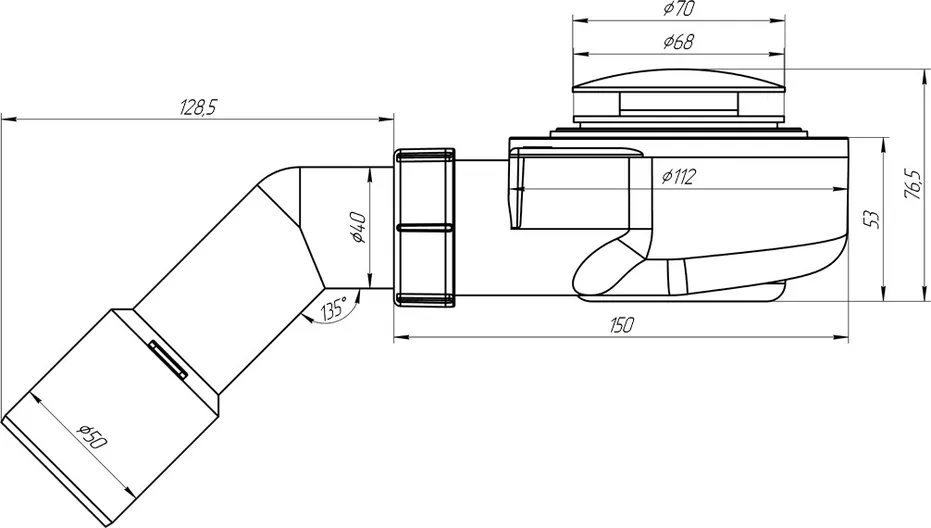 | Сифон для душевого поддона со сливным отверстием 50мм. Монтажная высота 53мм |