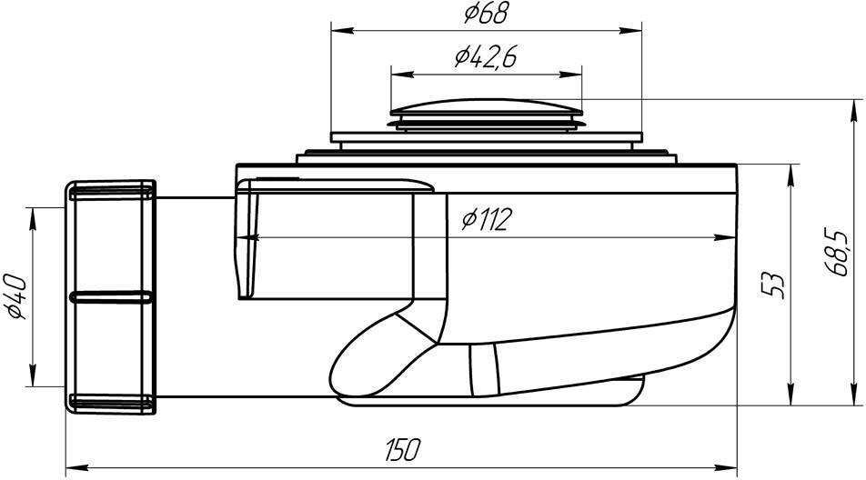 Сифон для душевого поддона со сливным отверстием 50мм. Монтажная высота 53мм