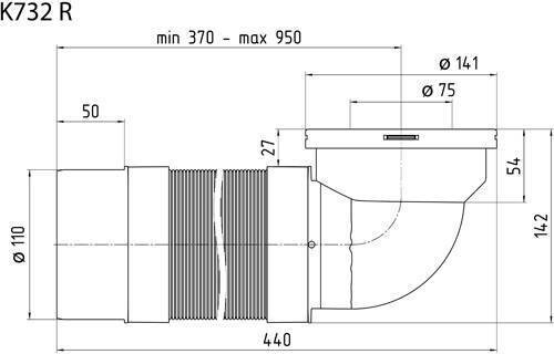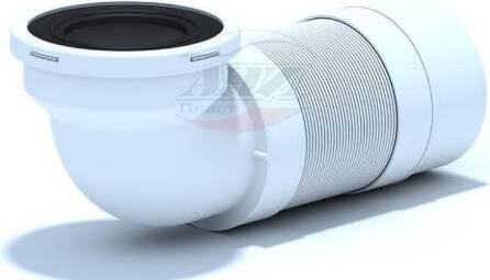 Удлинитель гибкий для унитаза выход в канализацию 110мм, угол 90 градусов длина 265-450мм. Для пластиковых труб