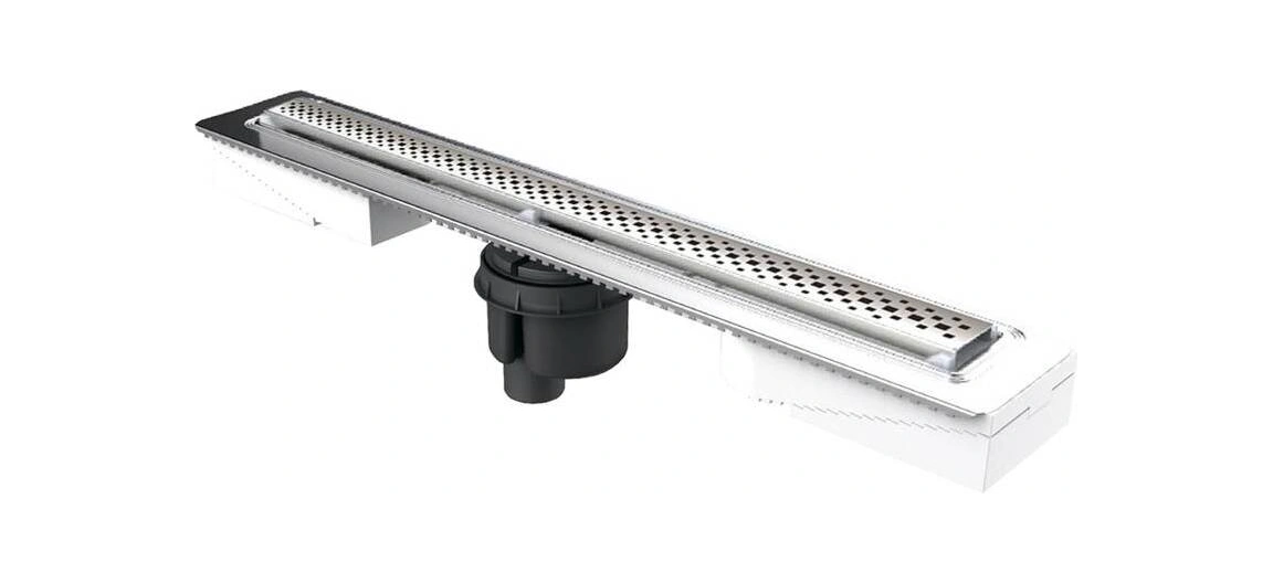 | Решетка и желоб водосток, нержавеющая сталь AISI 304 Регулировка решетки по высоте от 8 до 30мм Сетка для волос, пластик Комплект гидроизоляции Монтажная заглушка и регулируемые по высоте ножки, пенопласт Самопромывной S-образный сифон PP: вертикальный выпуск, пропускная способность 48л/мин, монтаж 360° Монтажный ключ, пластик |