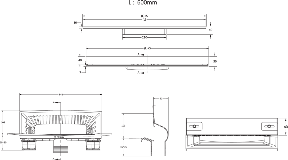 | Решетка и рамка, нержавеющая сталь AISI 304 Комплект регулировки рамки и монтажные углы Сетка для волос, нержавеющая сталь AISI 304 Комплект гидроизоляции Желоб водосток пристенный, PP Регулируемые по высоте ножки, пластик Самопромывной S-образный сифон с переходником PP: горизонтальный выпуск D50 H60, пропускная способность 42л/мин, монтаж 360° Монтажный ключ, пластик |