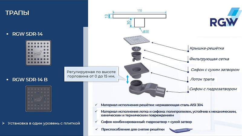 - Душевой трап - 1 шт. Инструкция - 1 шт.