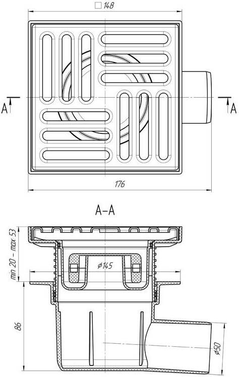 Трап горизонтальный АниПласт вып.50 регул.с реш. 15x15 металл. сухой УТ-00008236
