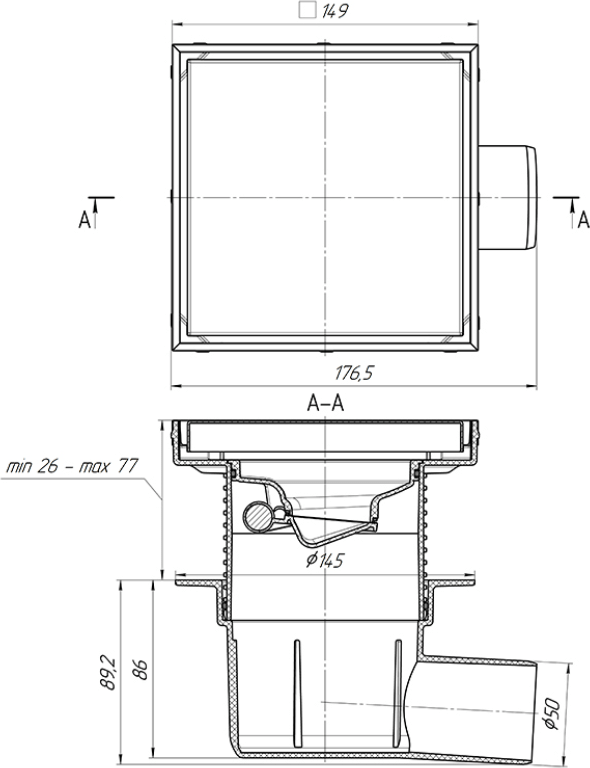Трап АниПласт TQ5812 15x15 выпуск боковой, гидрозатвор сухой УТ-00110925