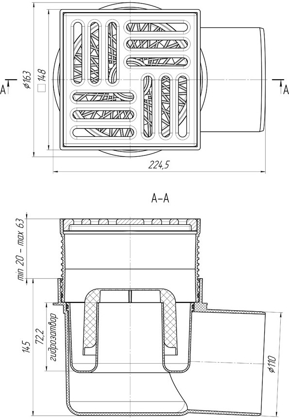 • Тип решетки слива: чугун, 150 на 150 мм