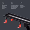 Продукт обладает низкой высотой монтажа и возможностью регулировки что предполагает экономию бюджета при заливке пола. Трап имеет инновационную конструкцию решетки с фильтром что значительно увеличивает межсервисный интервал.