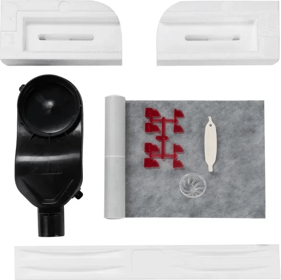 | Решетка и желоб водосток, нержавеющая сталь AISI 304 Двусторонняя установка решетки: металл и вклейка плитки с регулировкой по высоте от 8 до 25 мм Комплект фиксации решетки, пластик Сетка для волос, пластик Комплект гидроизоляции Монтажная заглушка и регулируемые по высоте ножки, пенопласт Самопромывной S-образный сифон PP: горизонтальный выпуск D50 H60, пропускная способность 42л/мин, монтаж 360° Монтажный ключ, пластик |