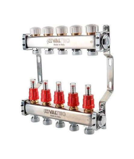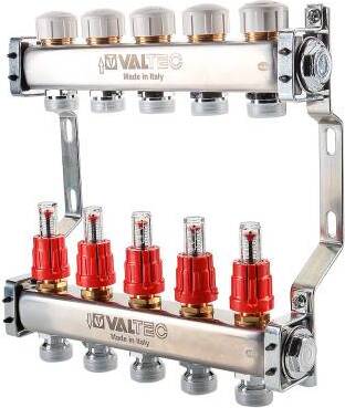 Коллекторные блоки из нержавеющей стали VTc.584 служат для распределения потока транспортируемой среды по контурам системы напольного отопления.